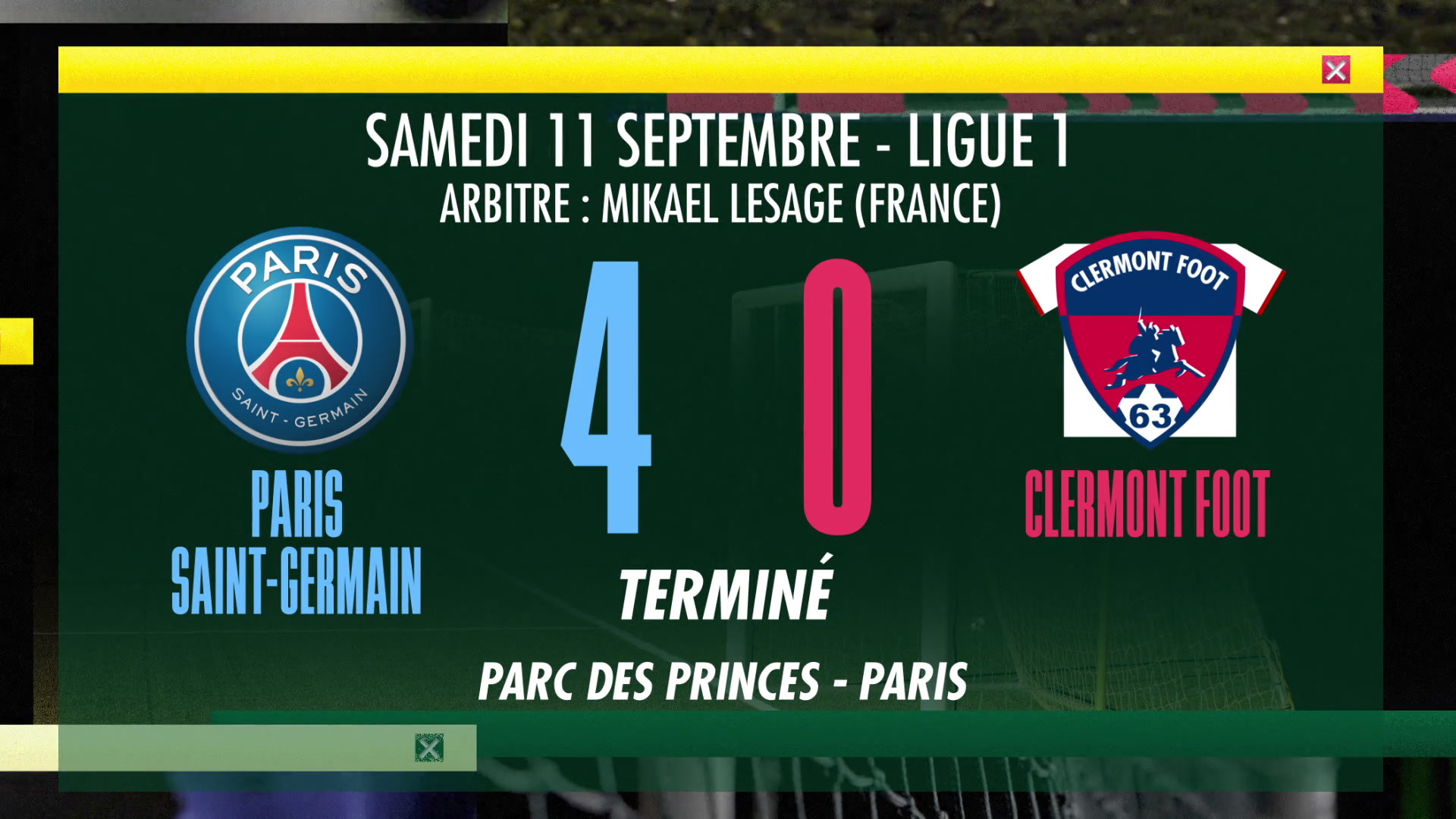 Tout savoir sur PSG Clermont. Paris na pas tremblé face au 3e de Ligue 1 et enchaîné un 5e succès consécutif. Suivez le match PSG Clermont Foot samedi 11 septembre 2021 à partir de 17h00 en direct à la télévision.